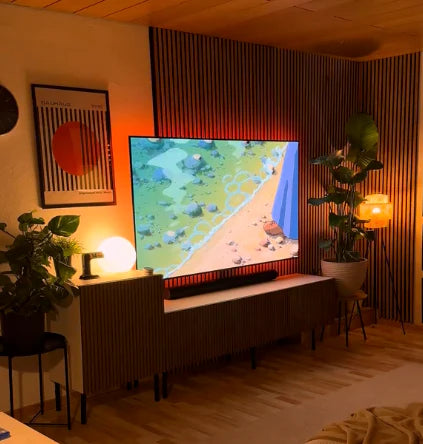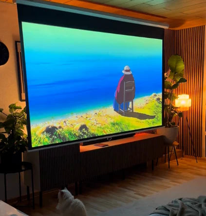Ogromny ekran 130 cali, dzięki któremu poczujesz się jak w prawdziwym kinie domowym.